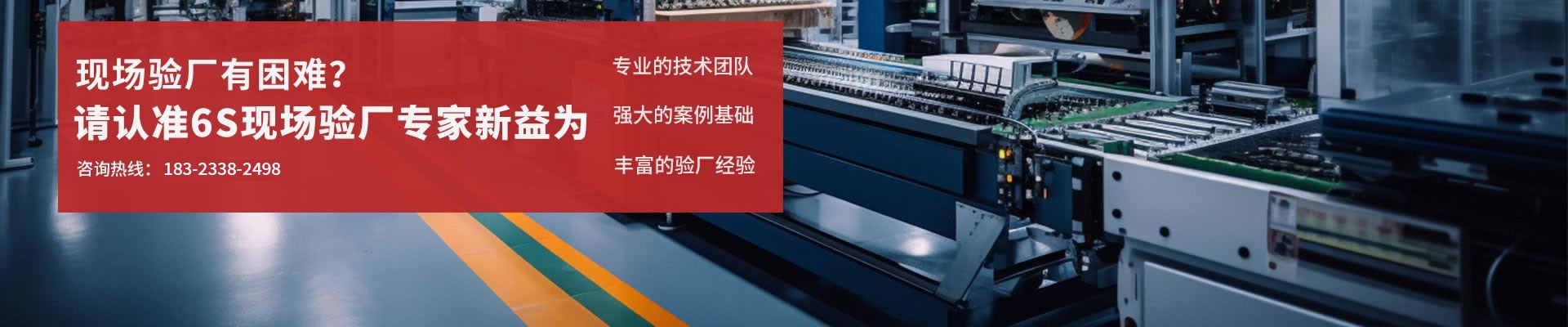 新益為6S現(xiàn)場(chǎng)驗(yàn)廠咨詢團(tuán)隊(duì),有著豐富的現(xiàn)場(chǎng)輔導(dǎo)經(jīng)驗(yàn),能在短時(shí)間內(nèi)針對(duì)不同的工廠以及不同審核客戶的要求“量身定制”一套整改成本低、簡(jiǎn)單可行、保證通過的解決方案,現(xiàn)場(chǎng)輔導(dǎo)及全程跟進(jìn),并安排經(jīng)驗(yàn)豐富的咨詢師陪同審核,確保審核順利通過。